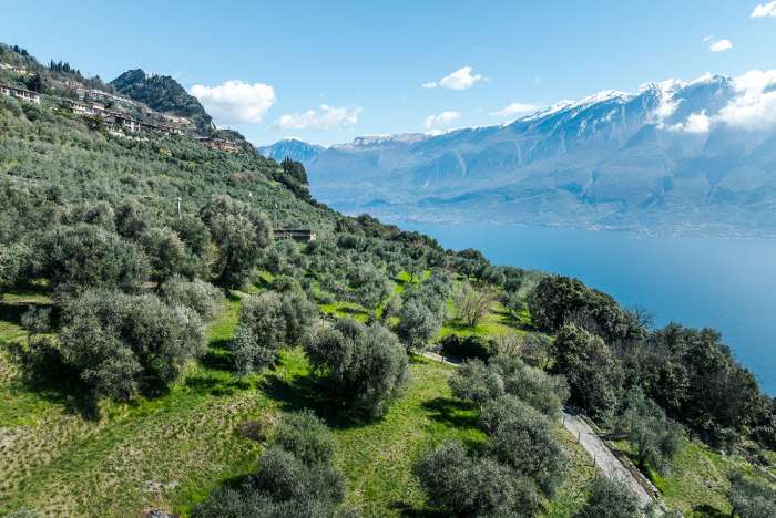 Il sentiero CAI 260 si inerpica deciso: i primi gradoni richiedono energia, ma presto la fatica lascia spazio alla meraviglia. Alle spalle il lago si allarga come un mare, davanti si aprono uliveti secolari e muretti in pietra che raccontano la pazienza dei contadini.