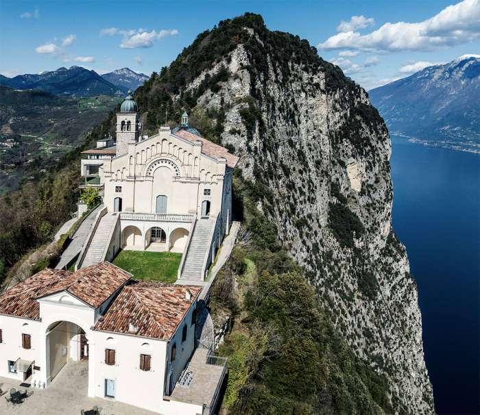 Quando arrivi in alto (687 m), ti trovi davanti a uno dei luoghi più suggestivi del Garda: il Santuario sospeso tra cielo e acqua, meta di pellegrini e punto panoramico che lascia senza parole.